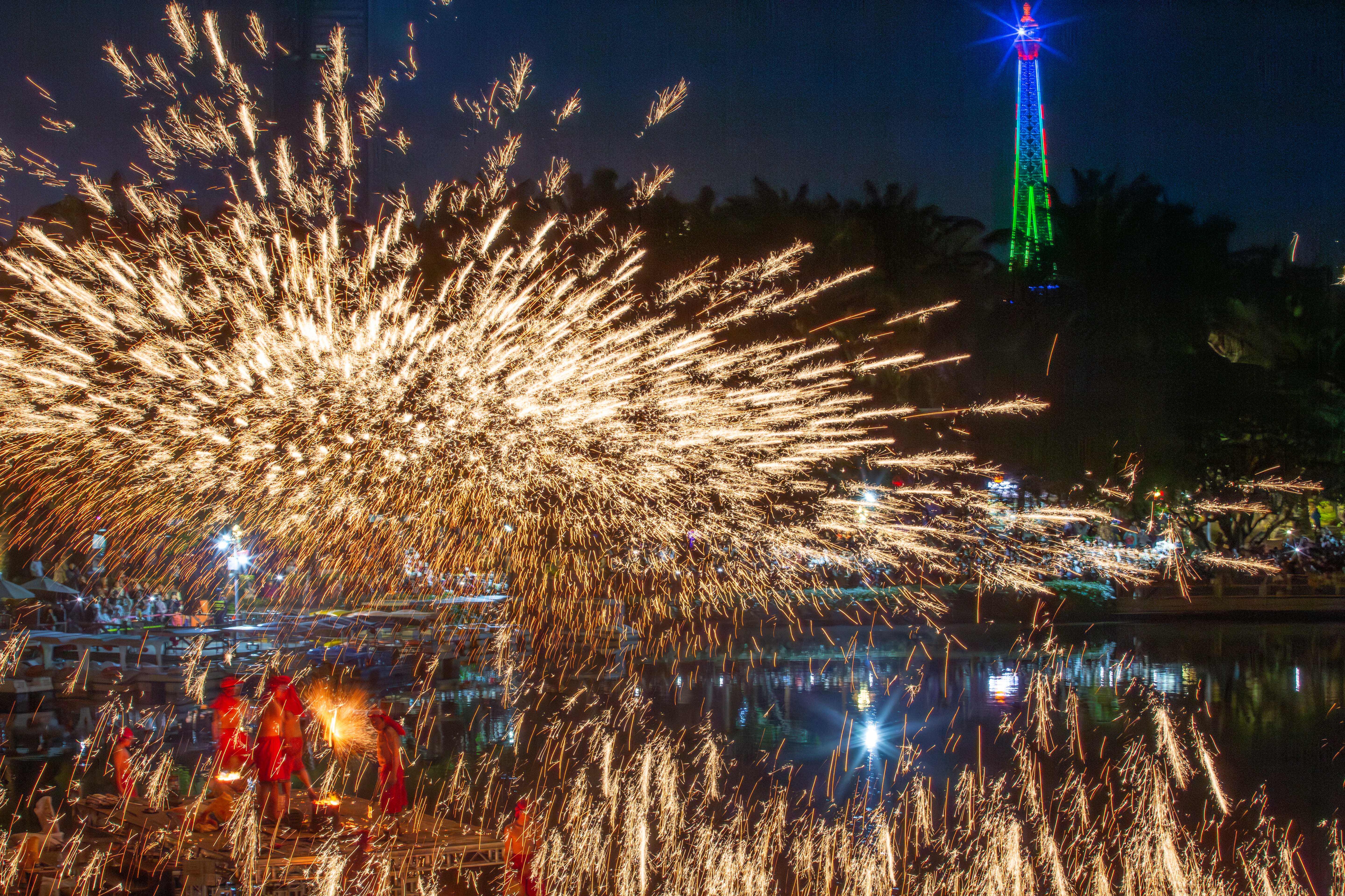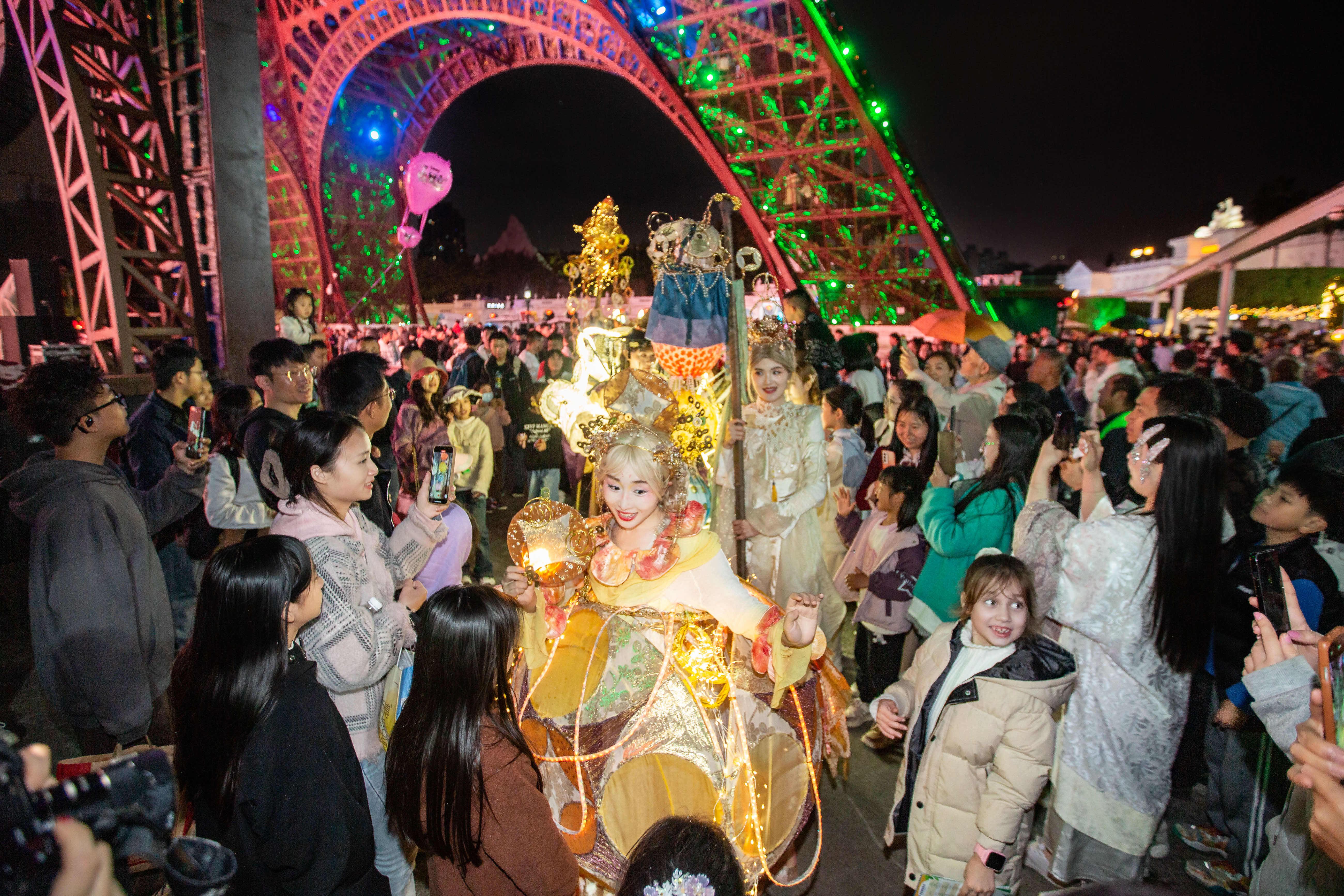 举例锦绣中华·习惯村全新灵通的大型国风主题区《锦绣盛市·梦华录》,焕新上演大型中原综艺史诗《龙凤舞中华》以及《黑传奇:悟空》新春游园会,以多维度的新业态点亮鹏城新春;寰球之窗初次引进非遗本性上演,水上飞东说念主、火壶、打铁花、潮汕英歌舞等精彩纷呈,让搭客深度体验传统身手的超卓韵味;小梅沙度假区的水下好意思东说念主鱼饰演、四海龙王贺年、种种海洋动物闹新春也让8万多名搭客在深圳体验到了滨海风情的松懈年味。